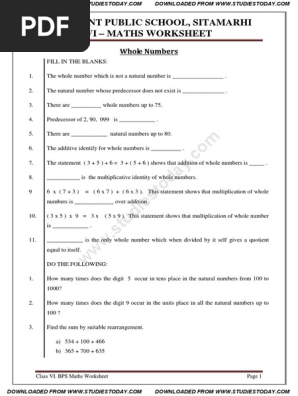 Cbse 6th grade math worksheets
